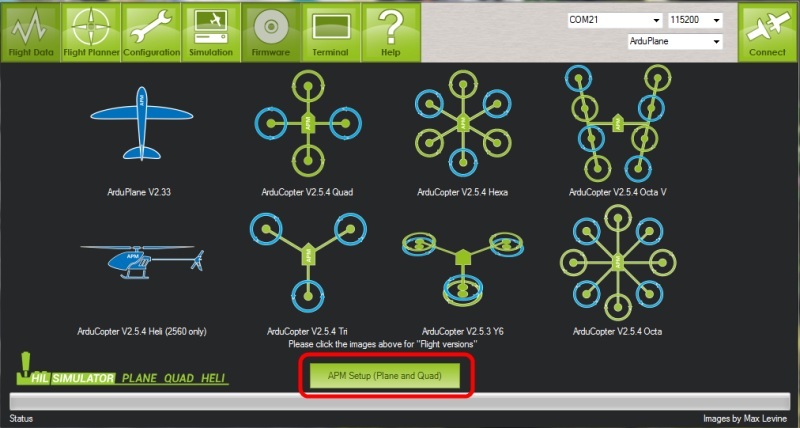 - Anslut din ArduCopter till datorn och öppna Ground Control Software (exempelvis Mission Planner).