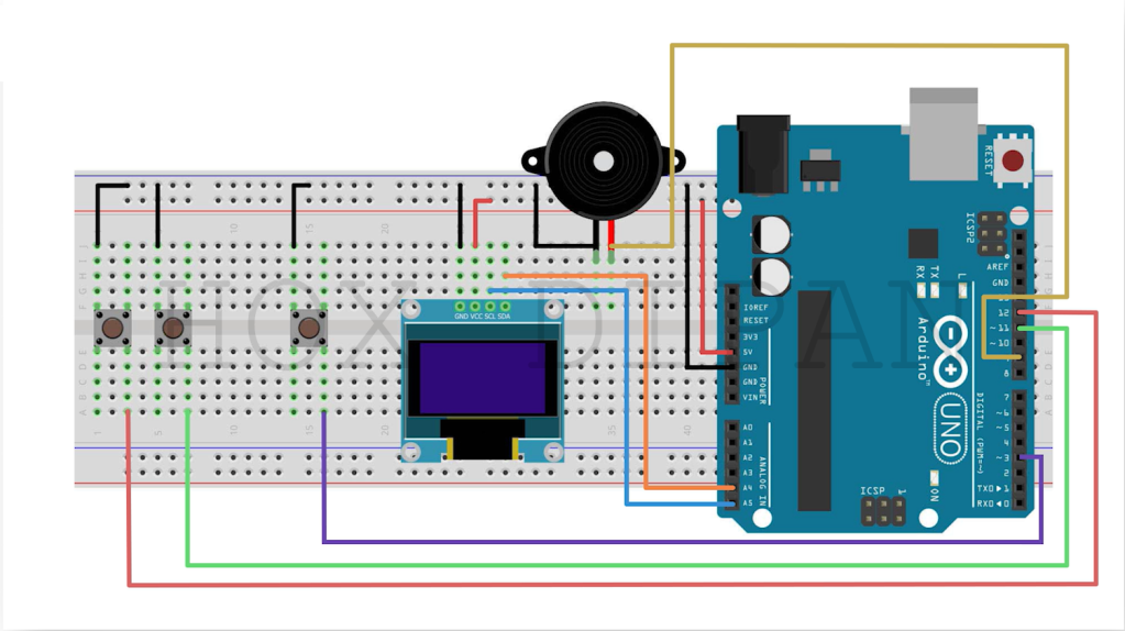 Nu när vi har alla komponenter på plats, låt oss gå igenom de steg som krävs för att bygga vårt spel. Det här avsnittet kommer att ge en detaljerad genomgång av byggprocessen, från anslutning av komponenterna till kodning av spelet.