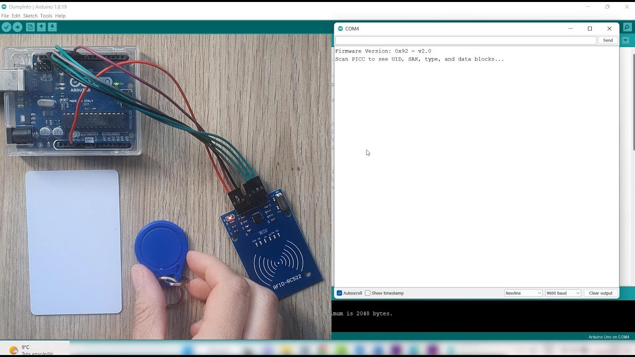 Nu när allt är anslutet och ditt program är laddat, kan du köra det för att läsa UID. Här är vad du ska göra: